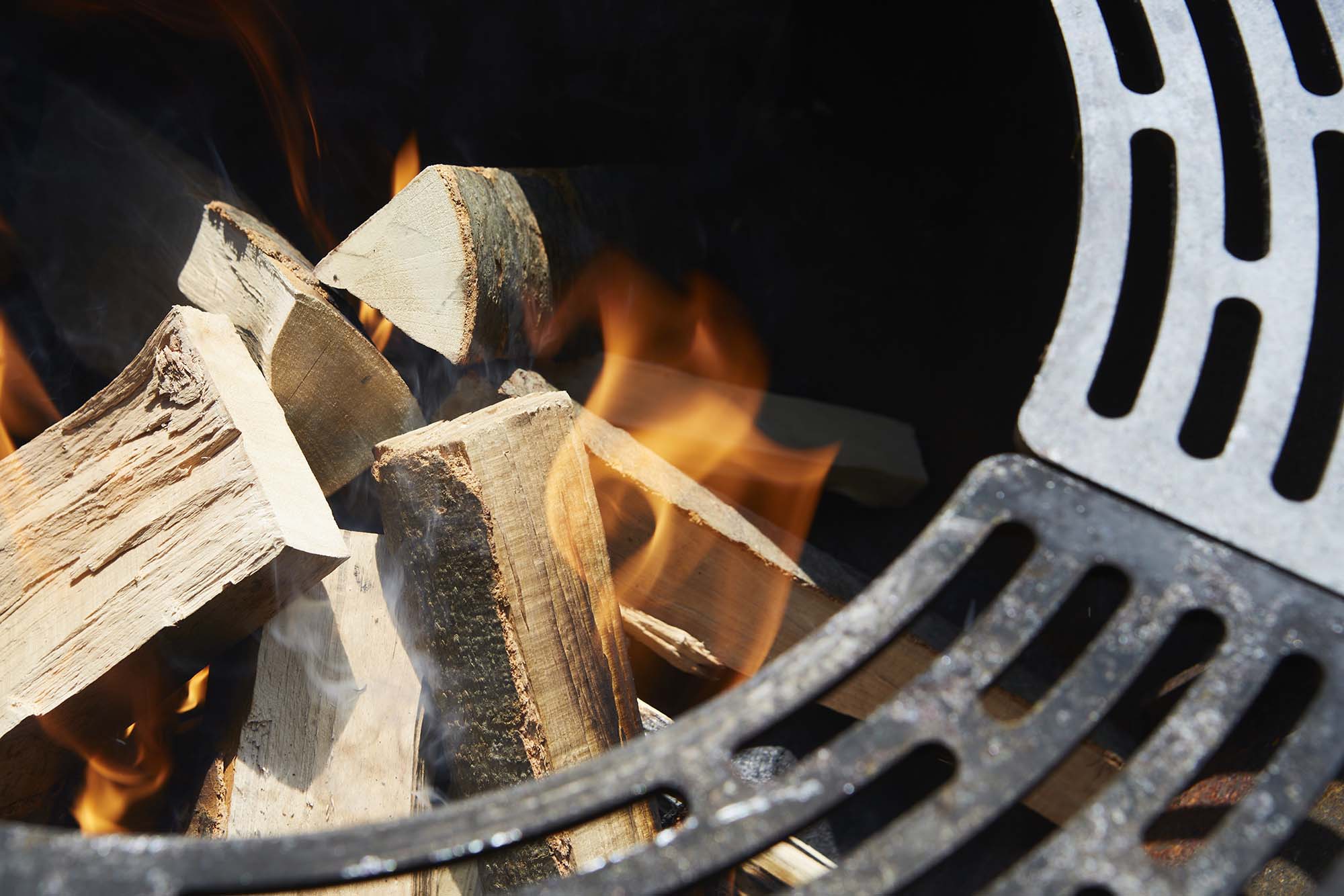 Before you fire up your Nestor BBQ, it is useful to have everything on hand. For example, make sure the wood storage in your Nestor is filled. Here, it is important that the wood is well dried. By using dry wood, you avoid smoke. And less smoke = less tears in the eyes, which is something everyone wants, right? Dried beech or oak wood is best, as it burns up into a mass of coal that heats up the cooking plate optimally. Avoid pine and pallet wood, these can develop a toxic smoke. Stack the logs to a maximum of 10 centimetres below the top of the wood storage and always place them with the bark facing upwards.