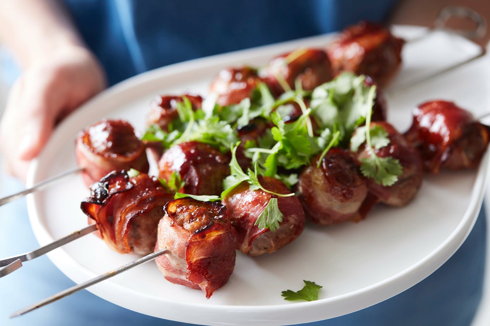 Remove the smoked moink balls from the smoker and, before serving, briefly fry them on the grill or in the pan. Sprinkle with some barbecue sauce if desired.