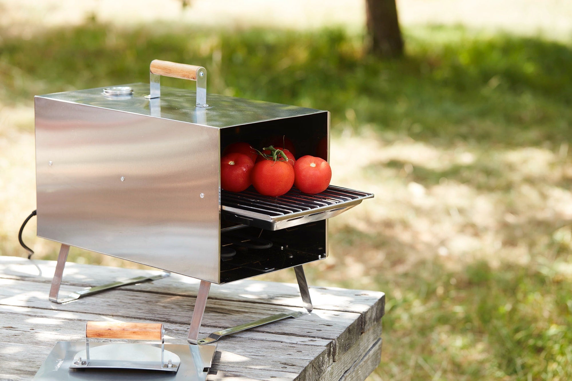 Cut the tomatoes in half and roll them in some olive oil. Chop the fine sprigs of thyme and rosemary and season the tomatoes. Place the tomatoes in a Barbecook grill pan and place the pan on the upper grid of the Oskar, fill the water dish for ¾ with water. Wrap some water-soaked Barbecook olive smoking chips in aluminium foil, poke a few holes in it, place on your charcoal and close the smoker. Thanks to the adjustable air supply at the bottom and top of the appliance, you retain full control throughout the process. It’s important that the temperature in the smoker doesn’t exceed 100 °C. You can easily monitor this via the built-in thermometer. Check regularly to see if there is enough water left in the dish and whether you need to add some extra smoking chips. After two hours, the smoked tomatoes can be taken out of the smoker. Let them cool down.