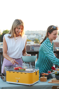 In the city park, at the campsite or just on your terrace? Barbecuing, wherever and whenever you want, that sounds awesome! With the handy Carlo table BBQ, it's perfectly possible! Carlo is a portable fancy barbecue available in various cheerful colours such as sunshine yellow, sky blue, chili pepper, urban grey and army green. Happy vibes guaranteed! With this table BBQ, you can serve up to six people, at home or on the go. Moreover, it is easy to take this fancy barbecue with you thanks to its handy carrying bag. The model is also extremely safe to use together with kids: Carlo, with the 'C' of 'Cool Boy', always stays cool on the outside and thanks to the raised rim, food does not fall off the table BBQ. In this way, we avoid burnt fingers and lost delicacies.