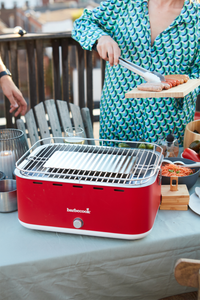 In the city park, at the campsite or just on your terrace? Barbecuing, wherever and whenever you want, that sounds awesome! With the handy Carlo table BBQ, it's perfectly possible! Carlo is a portable fancy barbecue available in various cheerful colours such as sunshine yellow, sky blue, chili pepper, urban grey and army green. Happy vibes guaranteed! With this table BBQ, you can serve up to six people, at home or on the go. Moreover, it is easy to take this fancy barbecue with you thanks to its handy carrying bag. The model is also extremely safe to use together with kids: Carlo, with the 'C' of 'Cool Boy', always stays cool on the outside and thanks to the raised rim, food does not fall off the table BBQ. In this way, we avoid burnt fingers and lost delicacies.
