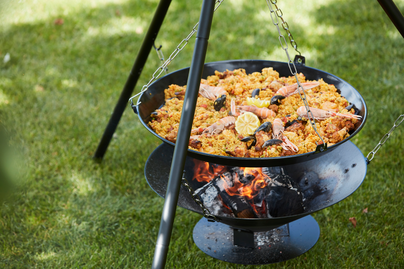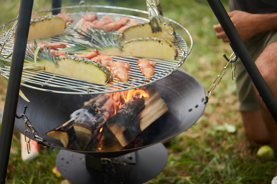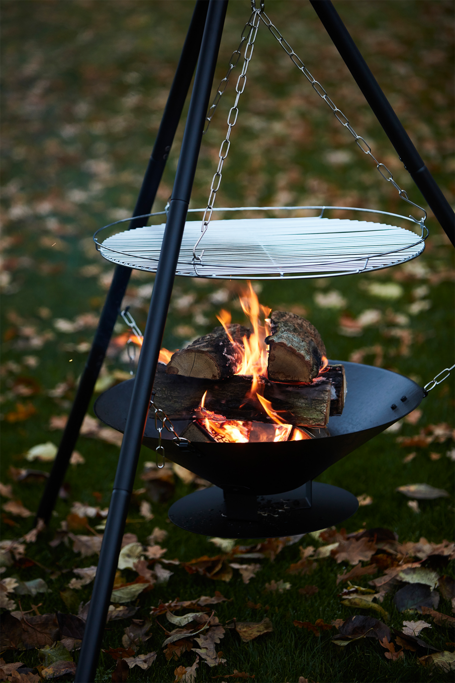 Are you looking for a fun and original way to cook outside? Something extra adventurous and extra cozy? Then choose Barbecook's wood BBQ Junko! Unlimited cooking pleasure and a real eye-catcher in your garden. The Junko wood BBQ consists of a tripod with a pulley system and chains. Between the tripod is a fire bowl. A grid, pan or pot is hung above this fire bowl in/on which delicious preparations can be made. Take your grilling experience to the next level and choose for the Junko wood BBQ tripod with pulley system!