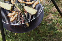 A tripod, a fire bowl, a pulley system and some cooking accessories, that's all you need to enjoy an unforgettable evening with friends or family. With the Junko wood BBQ you don't only prepare delicious dishes, this tripod BBQ also looks fantastic and gives warmth to all your guests! From now on no more walking back and forth between your BBQ and your guest table. Your guests can accompany you around the fire bowl while cooking. With some drinks and the delicious aromas of the BBQ preparations, this is the perfect setting to start off your BBQ party. Thanks to the handy pulley system at the top of the Junko tripod, you decide for yourself at what height you want your preparation to be cooked. Just turn the handle of the pulley system and your pot, pan or grill will hang closer to or further away from the fire. The sturdy chains hold everything firmly in place. Barbecook offers various accessories that can be attached to the pulley system and chains. You can choose for a chrome-plated steel roaster with a diameter of 60 cm, a wok pan, a large pan and cast iron simmer kettles/Dutch ovens in various sizes (0.7 litres, 3 litres and 9 litres). So with the Junko wood BBQ you have a lot of possibilities! The tripod and fire bowl of this BBQ are made of cast iron, a material that conducts the heat well and retains it for an extremely long time. The tripod has a height of 166 cm. Moving around with your Junko wood BBQ? No problem, just disassemble your BBQ and store everything in the handy carrying bag!