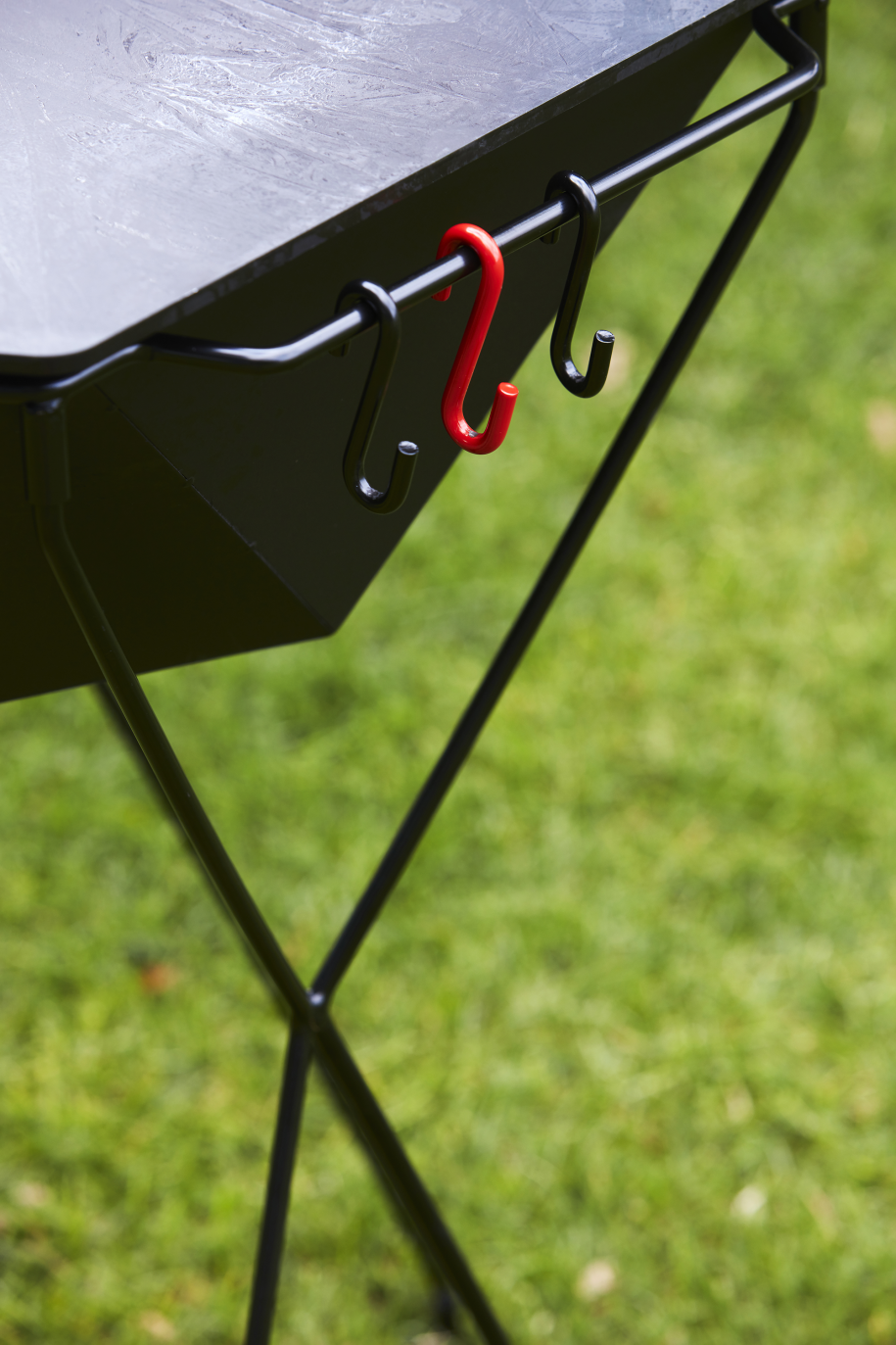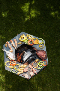 Together around the fire bowl with some drinks and delicious BBQ snacks, it appeals to everyone's imagination! With the Rila wood BBQ it becomes reality. This multifunctional BBQ can be used to prepare delicacies, but also serves as a fire bowl. Perfect for warming up yourself and at the same time to enjoy the dancing flames! The Rila wood BBQ has a carbon steel griddle with a diameter of 75 cm. The baking tray has 6 corners, dividing it into 6 'separate' areas. This makes it perfectly possible, for example, for every guest to put delicacies of their choice on the plate. Gourmet-style but on a BBQ, delicious! The Rila wood BBQ is not only known for its multifunctionality, the BBQ also has a beautiful design. With its geometric shapes it is a great decorative object in your garden. The wide base provides the necessary stability. The Rila wood BBQ has a height of 80 cm and has hooks for accessories. Think of a brush to marinate your preparations, a spatula or protective gloves.