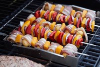 Lorsque vous voulez associer différents ingrédients, les piquer ensemble sur une brochette est une bonne idée. Veillez à choisir des ingrédients nécessitant à peu près le même temps de cuisson. Les poivrons cuiront beaucoup plus vite que les carottes, par exemple. Utiliser des brochettes est également une façon idéale de préparer de petits ingrédients qui pourraient sinon glisser sous la grille lors du barbecue. En piquant les ingrédients sur une pique, vous êtes assurés que ceux-ci cuisent uniformément et cela vous facilite la manipulation : pas besoin de cafouiller, vous les retournez toutes rapidement et proprement. Vous avez un total contrôle sur la cuisson de vos grillades. De plus, il est très facile de nettoyer un porte-brochettes. En général, vous pouvez facilement démonter le support à brochettes et le nettoyer complètement avec une éponge et un peu d'eau tiède. Il suffit de bien le sécher et votre porte-brochettes est prêt pour la prochaine utilisation !