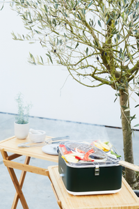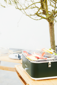 Dans le parc municipal, au camping ou simplement sur votre terrasse ? Faire un barbecue où et quand vous voulez, quelle super idée ! Avec le BBQ de table Carlo, c'est parfaitement possible. Carlo est un barbecue portatif au charbon de bois disponible dans différentes couleurs gaies telles que le jaune soleil, le bleu ciel, le piment, le gris urbain et le vert armée. Ambiance joyeuse garantie ! Ce barbecue de table permet à un maximum de six personnes de déguster de délicieux repas à la maison ou en déplacement. De plus, le barbecue de table Carlo est facile à emporter grâce à son sac de transport pratique. Le modèle est également extrêmement sûr à utiliser avec les enfants de la famille : Carlo, avec le "C" de Cool Boy, reste toujours au frais à l'extérieur et grâce à ses bords surélevés, pas de risque que la nourriture ne s’envole. Impossible donc de se brûler les doigts ou de perdre un précieux bout de mergez !