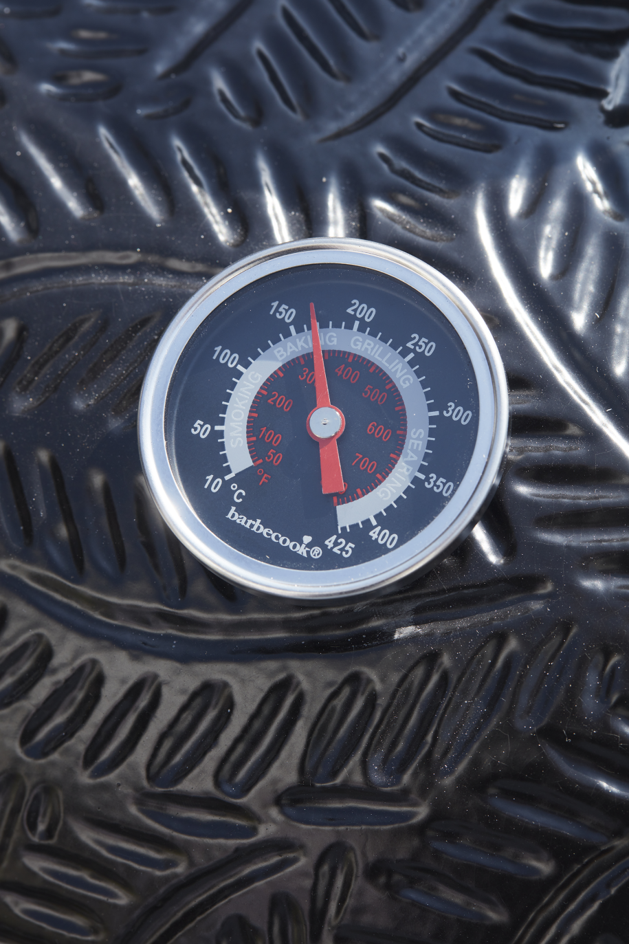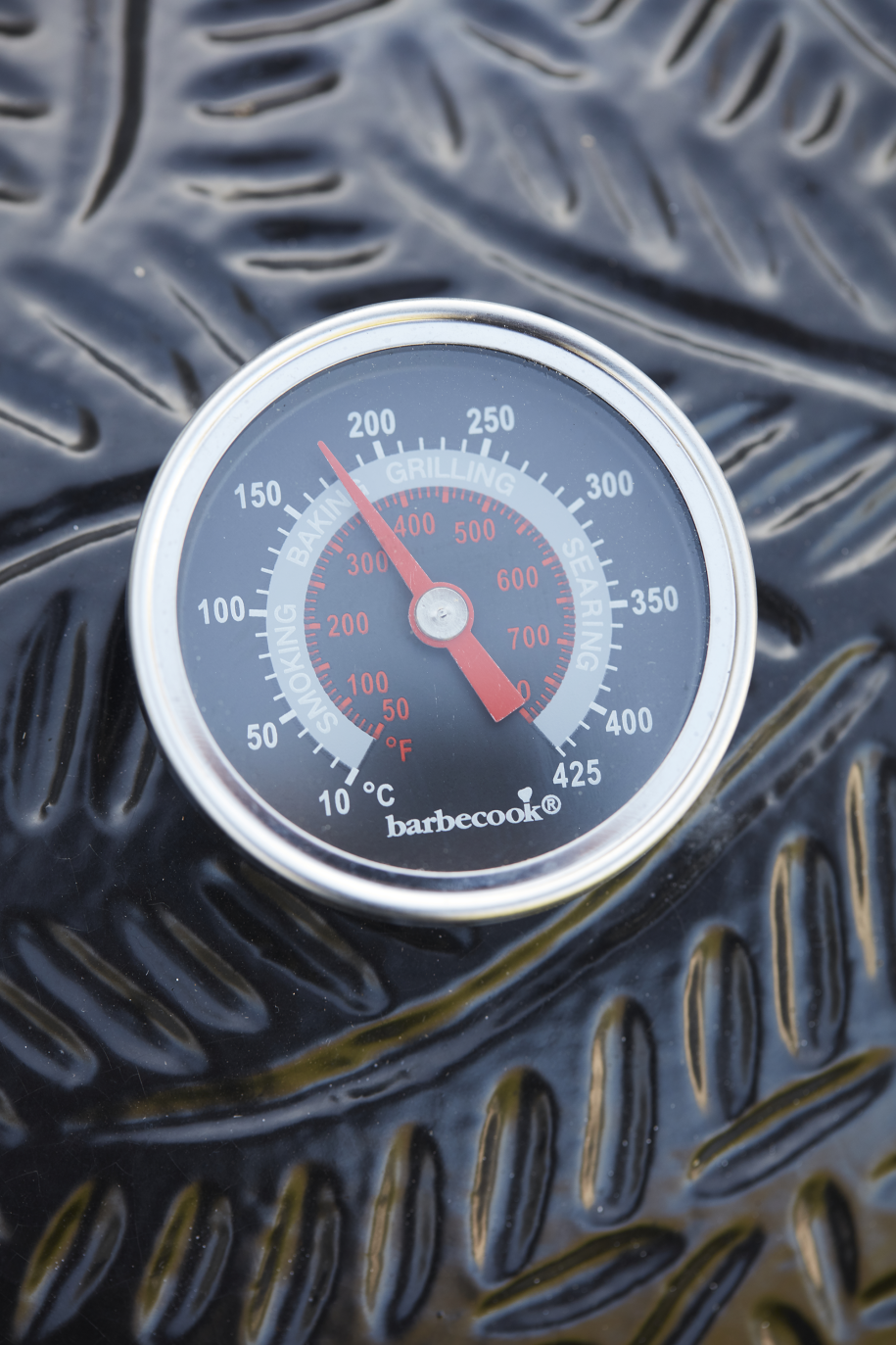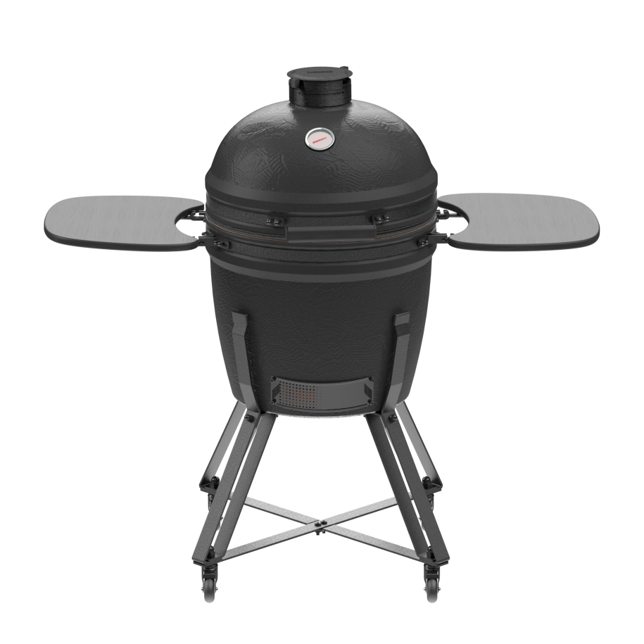 Une première caractéristique importante du barbecue kamado Kamal est que vous pouvez commencer votre séance de barbecue très facilement. Grâce aux quatre roues robustes, vous pouvez simplement faire rouler le BBQ kamado de son espace de rangement à la terrasse. Vous allumez ensuite votre grill kamado en remplissant le panier de charbon de bois pour environ ½ avec du charbon de bois et en l'allumant avec des allume-feu. L'alimentation en air en bas doit être complètement ouverte et le couvercle doit également être ouvert. Le corps en céramique autour du panier (foyer) retient parfaitement la chaleur et assure que la flamme s'allume rapidement. Une fois qu'il y a une couche de cendres grises sur les charbons, vous pouvez commencer le barbecue. Comme mentionné ci-dessus, le grill kamado Kamal retient très bien la chaleur. En effet, ce barbecue au charbon de bois est entièrement fait de céramique à base de mullite. Ce matériau maintient la chaleur à l'intérieur, assure que les charbons restent allumés et que la bonne température est maintenue. De plus, ce barbecue kamado dispose d'un couvercle avec un joint 100 % étanche à l'air grâce au joint en treillis métallique flexible et durable et aux quatre ressorts en acier inoxydable extrêmement solides. Cela signifie qu'aucun air ne peut entrer et que la chaleur, la fumée et le goût délicieux restent à l'intérieur. Vous pouvez facilement régler la température vous-même pendant le barbecue en jouant avec l'alimentation en air. Vous pouvez augmenter ou abaisser la température en ouvrant ou en fermant l'alimentation en air au niveau du curseur inférieur et de la vanne supérieure.