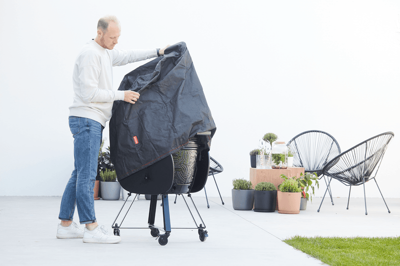 Le nettoyage de votre barbecue kamado Kamal est également extrêmement facile. Pour éliminer la saleté grossière, vous chauffez votre appareil pendant environ 30 minutes à 260 °C, de sorte que les aliments brûlés et d'autres résidus brûlent facilement. Ensuite, brossez l'intérieur avec une brosse douce, videz le bac collecteur et mettez simplement votre grille en acier inoxydable dans le lave-vaisselle. L'extérieur de votre barbecue céramique est facile à nettoyer avec un chiffon humide. Ensuite, séchez soigneusement l'appareil et mettez la housse du barbecue Kamal kamado sur votre appareil.