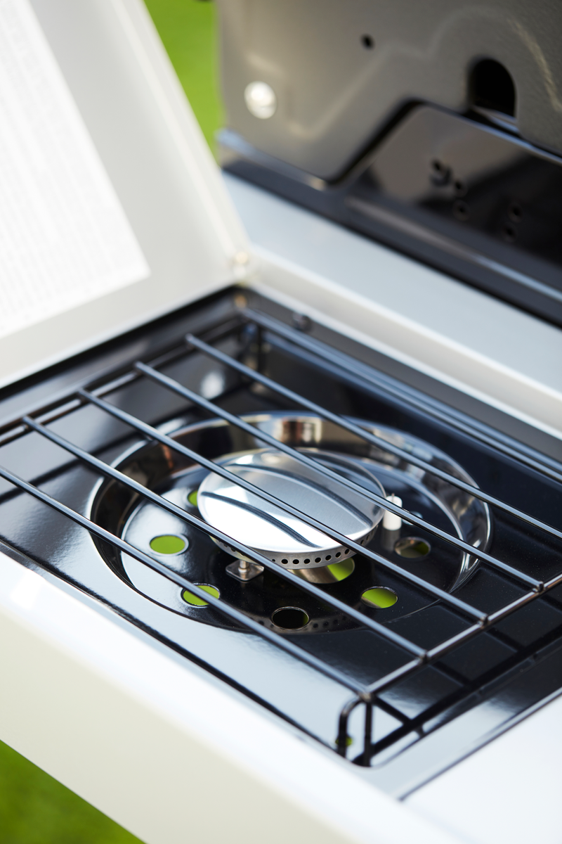 Le barbecue au gaz Spring 3212 présente de nombreux avantages. Vous pouvez allumer ce type de barbecue très facilement et en un rien de temps. Pas de perte de temps, vous pouvez vous mettre directement au travail ! Un barbecue au gaz est également connu comme un appareil fiable avec lequel vous pouvez préparer de nombreux plats : les classiques brochettes, mais aussi une pizza ou même un gâteau, tout est possible. Grâce au couvercle émaillé et au thermomètre intégré, vous gardez un contrôle maximal sur vos plats. Les grilles du barbecue au gaz Spring 3212 sont en fonte émaillée, parfaites pour saisir vos ingrédients efficacement et de façon uniforme. Vous faites griller plusieurs ingrédients et l'un d'entre eux est déjà prêt ? Il suffit de le placer sur la grille de réchauffage jusqu'à ce que les autres ingrédients soient prêts ! La graisse de vos préparations est recueillie dans un bac récupérateur de graisse lavable au lave-vaisselle, intégré à votre barbecue au gaz. Enfin, le barbecue au gaz Spring 3212 a également deux roues, ce qui le rend facile à déplacer et à ranger.