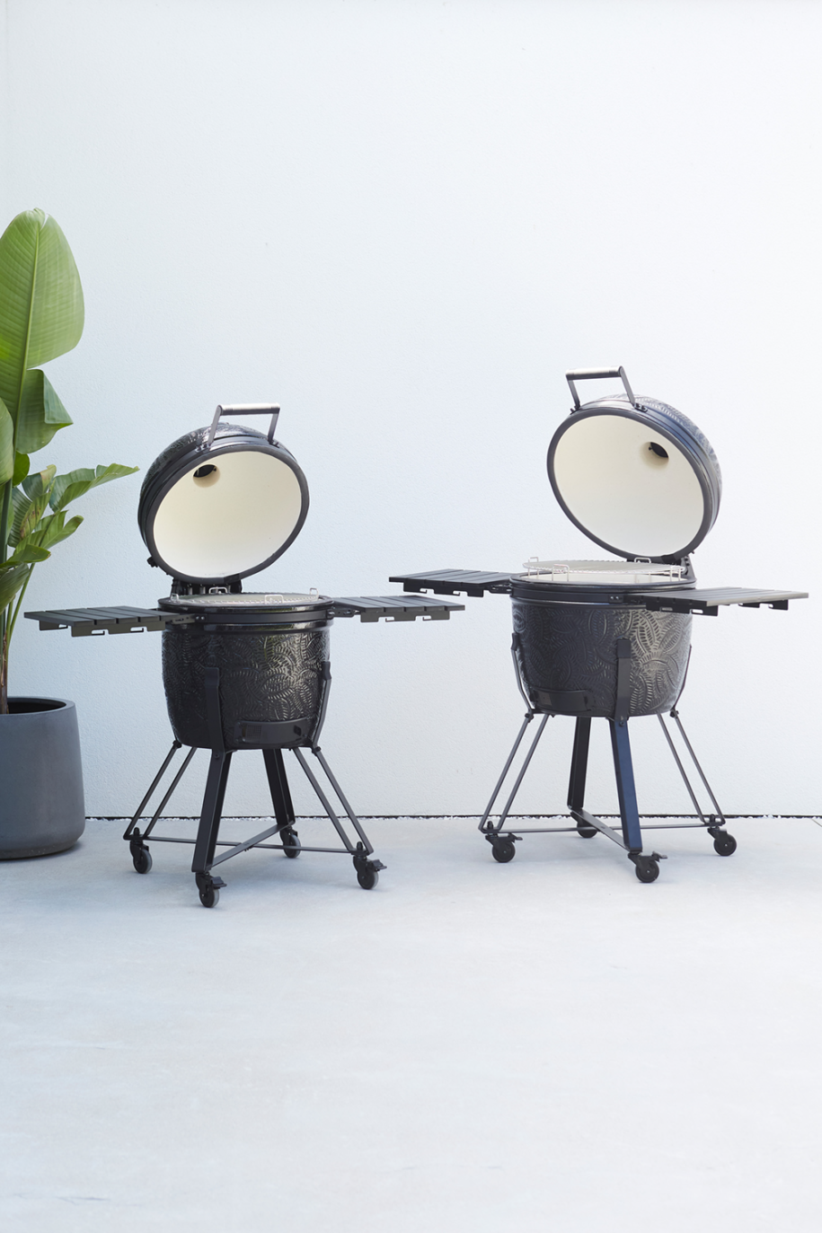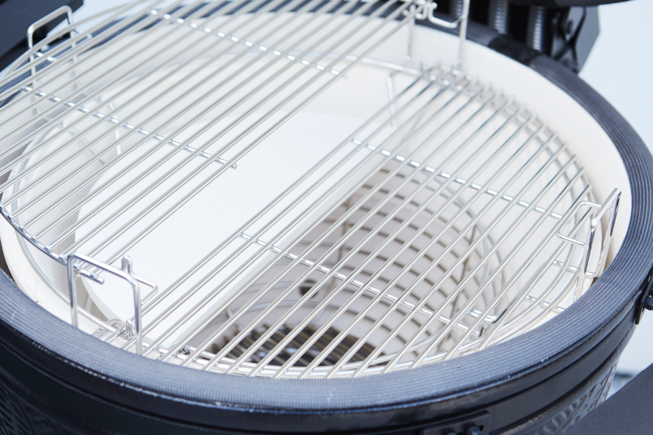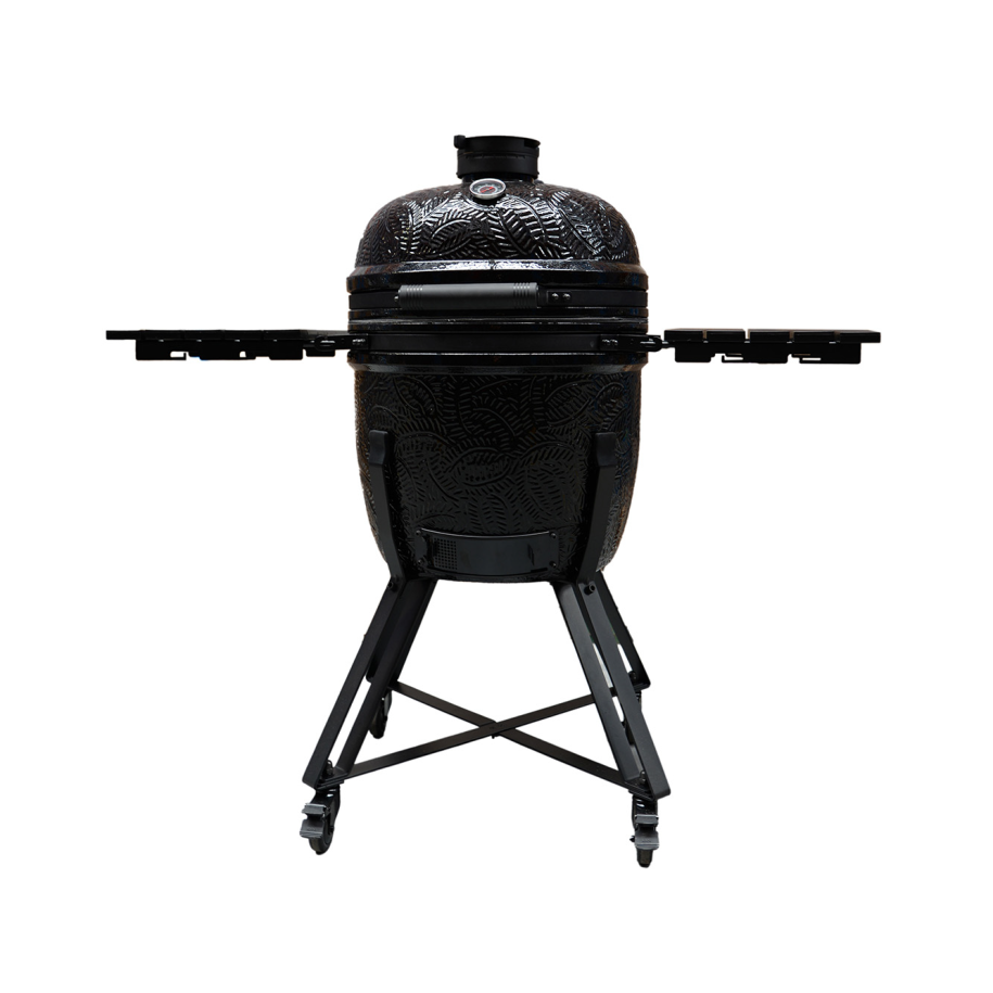 Kamal 2.0 est non seulement fonctionnel mais aussi ergonomiquement conçu avec un socle surélevé pour plus de confort pendant la cuisson. Les deux robustes tables latérales pliables en matériau HDPE durable et résistant aux intempéries offrent amplement d'espace pour les outils, les assiettes ou les ingrédients. Que vous optiez pour un grillage direct au-dessus des braises ou un grillage indirect en utilisant le système de cuisson flexible inclus, le Kamal enrichit votre expérience de barbecue avec des options de cuisson polyvalentes. Le système de cuisson flexible comprend un support sur mesure, deux grilles en acier inoxydable en forme de croissant, deux écrans thermiques en forme de croissant et un support pour marmite ou wok.